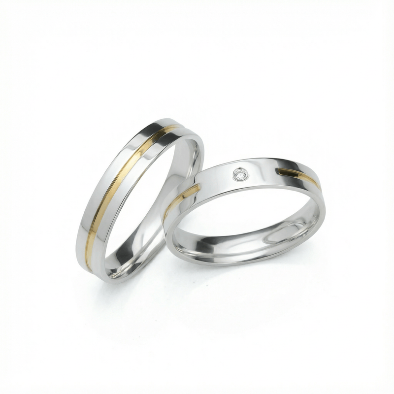 Aliança De Namoro Prata Com Filete De Ouro 4MM