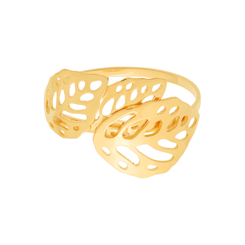 Composição: De ouro 750 amarelo, com detalhe de folhas polidas.