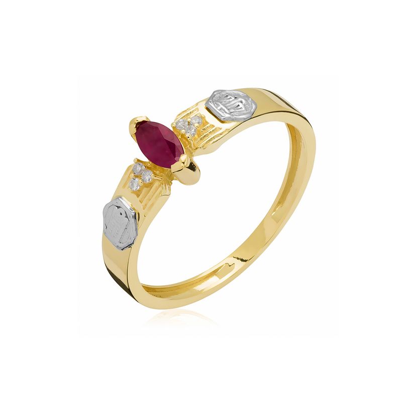 Composição: De ouro 750, 6 pedras redondas de 1mm e 1 pedra navete central de 6/3 mm.