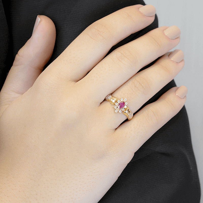 Composição: De ouro 750, 10 pedras de 1.5 mm e 1 pedra navete central 3/6 mm.