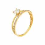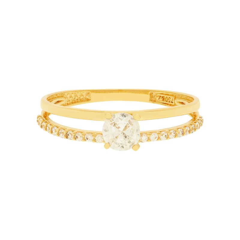 Anel Solitário De Ouro 18K Aro Duplo Com Zircônia
