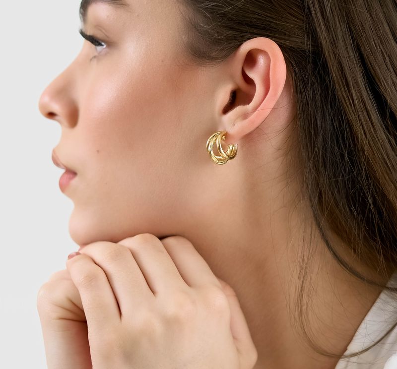 Argola De Ouro 18K Fio Triplo Com Central Torcida