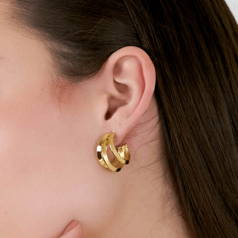 Argola De Ouro 18k Fio Triplo Triangular