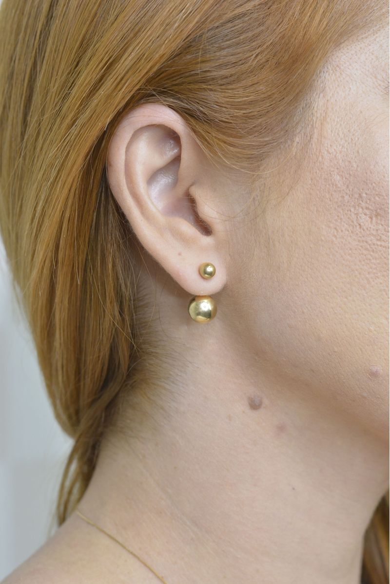 Brinco De Ouro 18K Elos Esferas De 5MM E 9MM