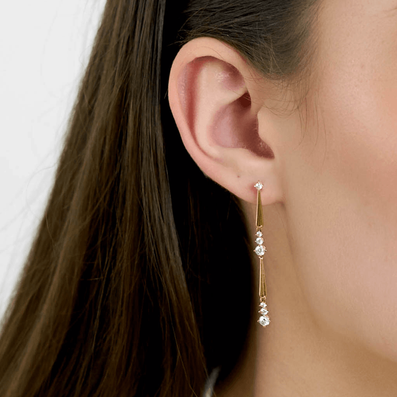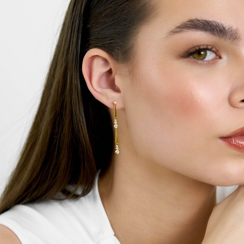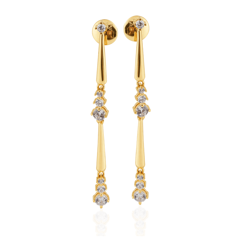 Brinco De Ouro 18K Fio De Gota Com Zircônias