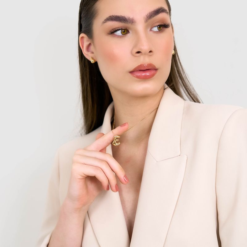 Colar De Ouro 18K Letra E Orgânico 40cm
