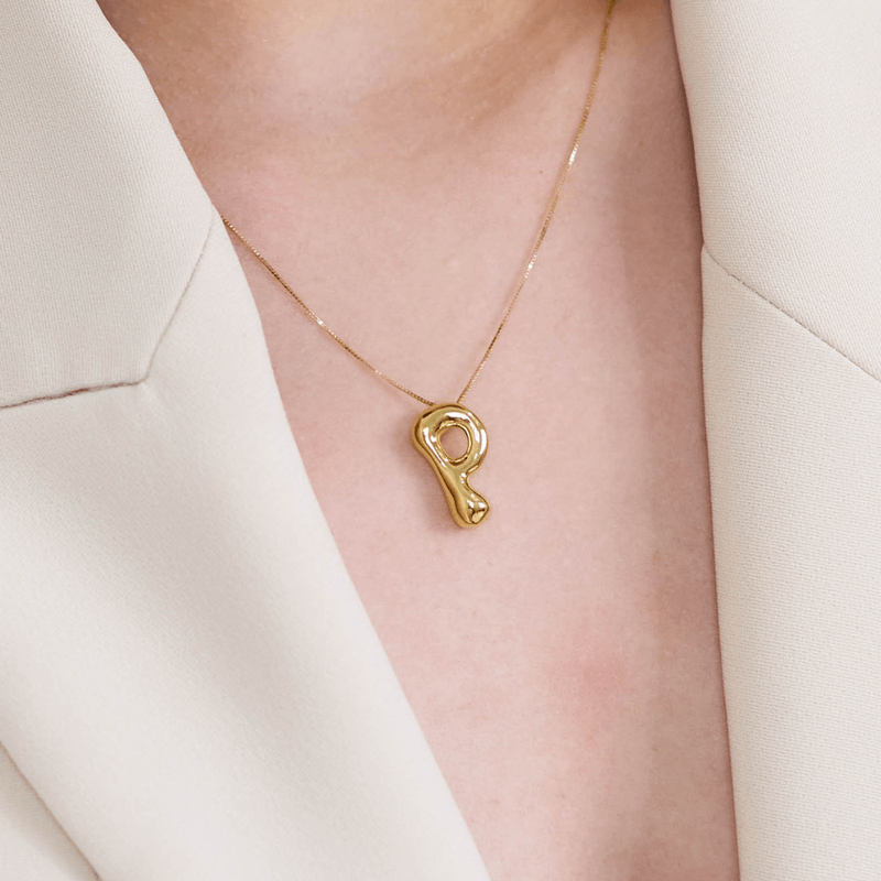 Colar De Ouro 18K Letra P Orgânico 40cm