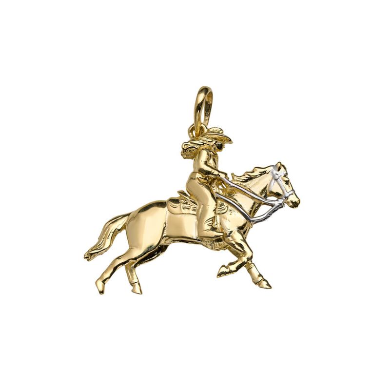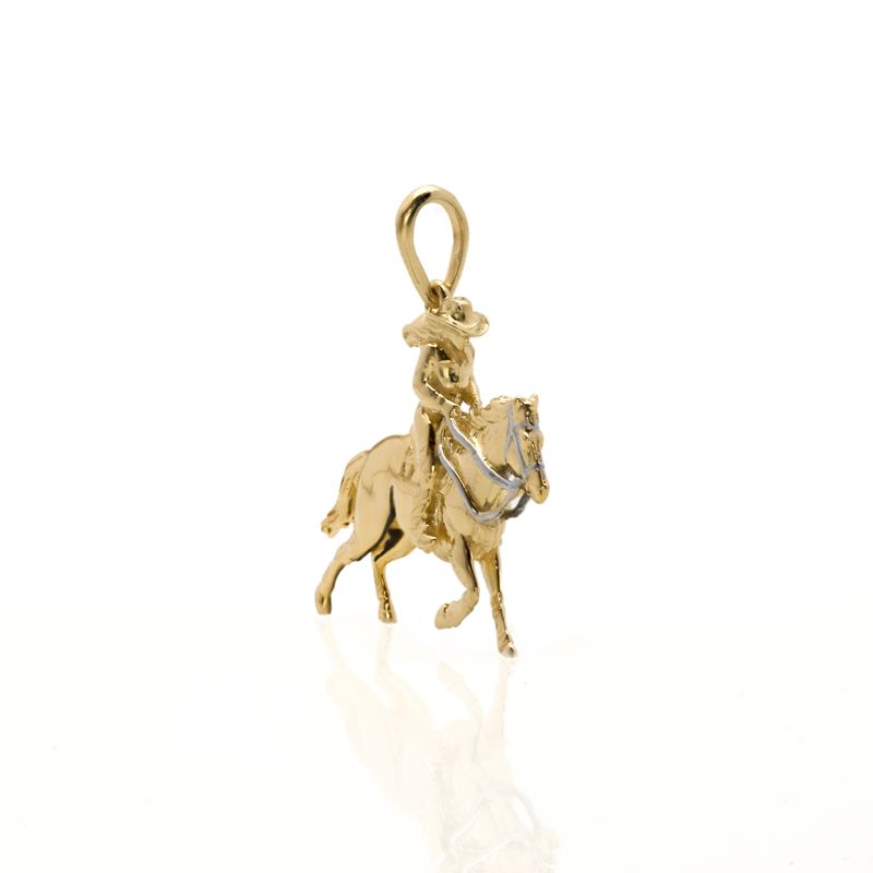 Ouro Amarelo 18K/750 com Ródio na rédia do cavalo.